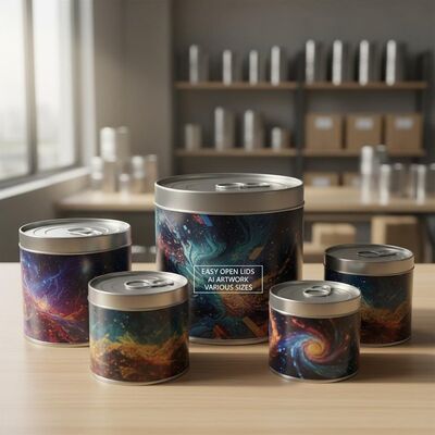 Available in various sizes with easy-open or normal lid options, these cans serve multiple applications including retail packaging, promotional giveaways, industrial storage, and gift items. High-quality artwork printing enhances product presentation and brand recognition.